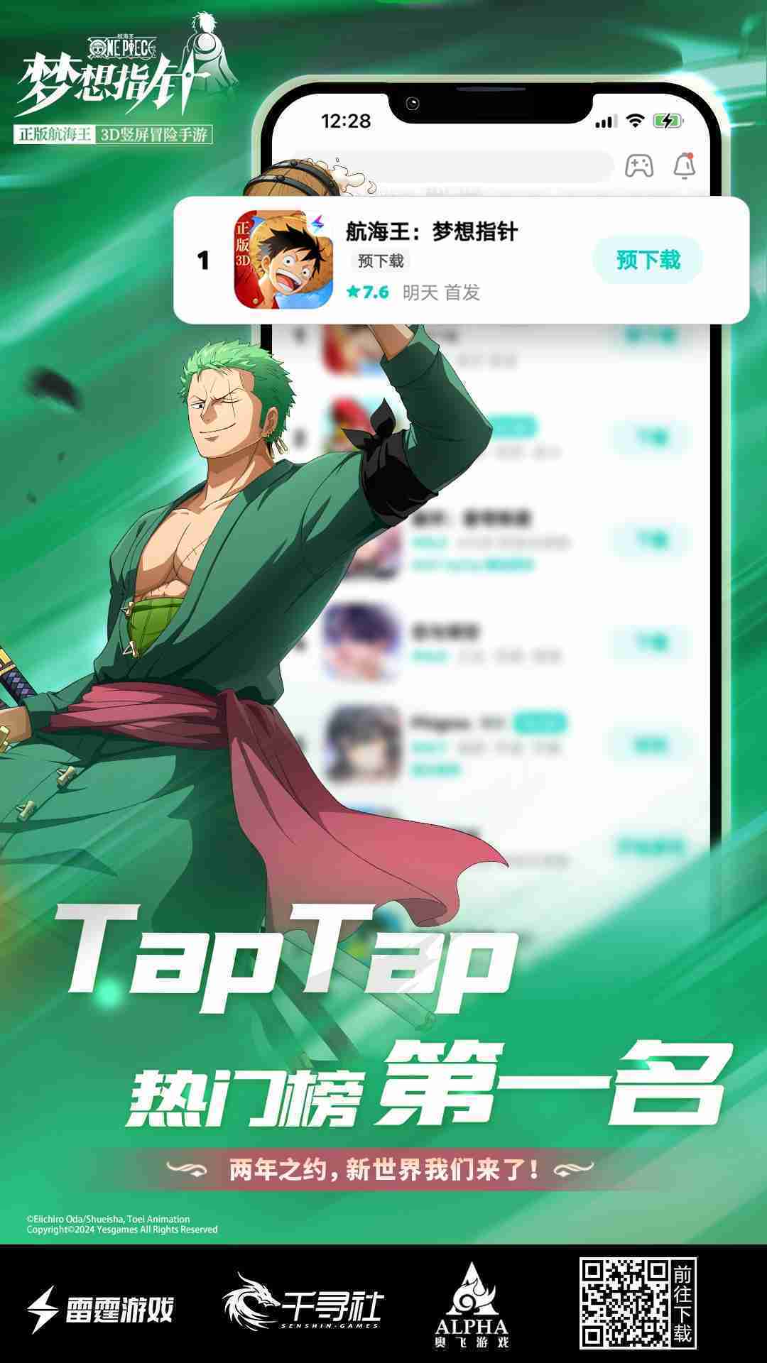 《航海王::::梦想指针》登顶App Store免费榜,,,,公测福利汇总!!