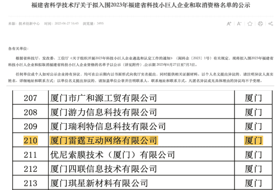 此次再次入选福建省科技小巨人企业既是对雷霆互动创新能力的认可,,也是对市场发展潜力及综合实力的高度肯定。。。。